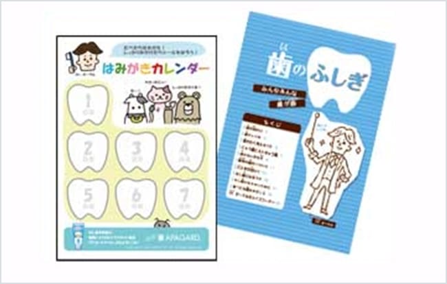 「健康で美しい歯の大切さ」を広くご理解いただき、皆さまのオーラルヘルスケア意識の向上をサポートするため、様々な冊子を制作。各地で開催される歯科医師会イベント、小学校、自治体の母子保健課などを通じ、配布しています。