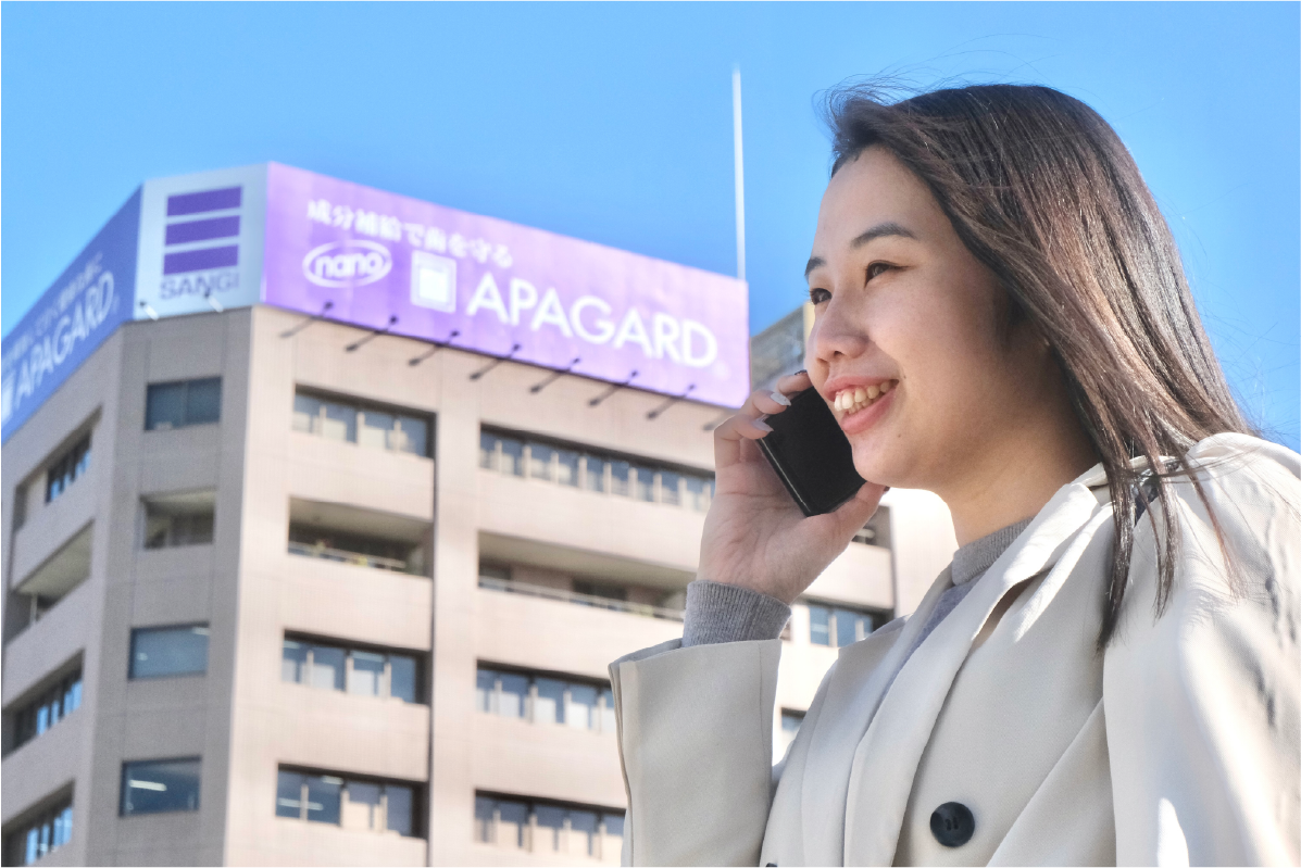 関東エリアの営業を担当しています。主力の美白歯みがき「アパガード」「アパデント」を中心に、商品の販売拡大がミッションです。商品採用や販促企画の提案、それに関わる資料作成や情報収集、店舗巡回などが主な業務です。