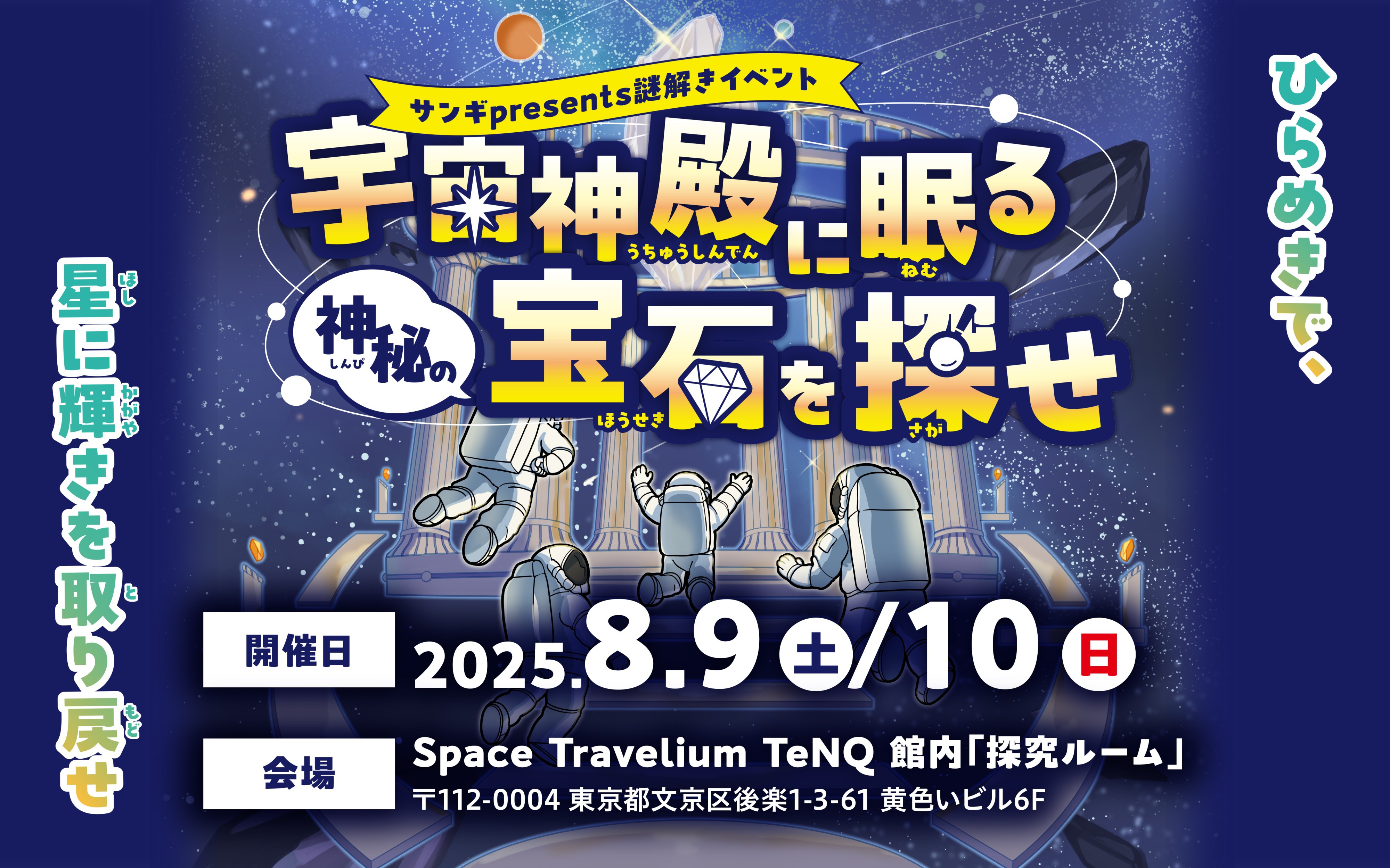 さらに、2025年8月9日(土)・10日(日)の2日間は夏休み中の小中学生とそのご家族が一緒に楽しめる「謎解きイベント」を開催。「宇宙神殿に眠る神秘の宝石を探せ」をテーマに、宇宙を舞台にした数々の謎を解き明かしていくことで、子どもたちの好奇心とチャレンジ精神を育む、夏休みにぴったりの学びと体験イベントです。